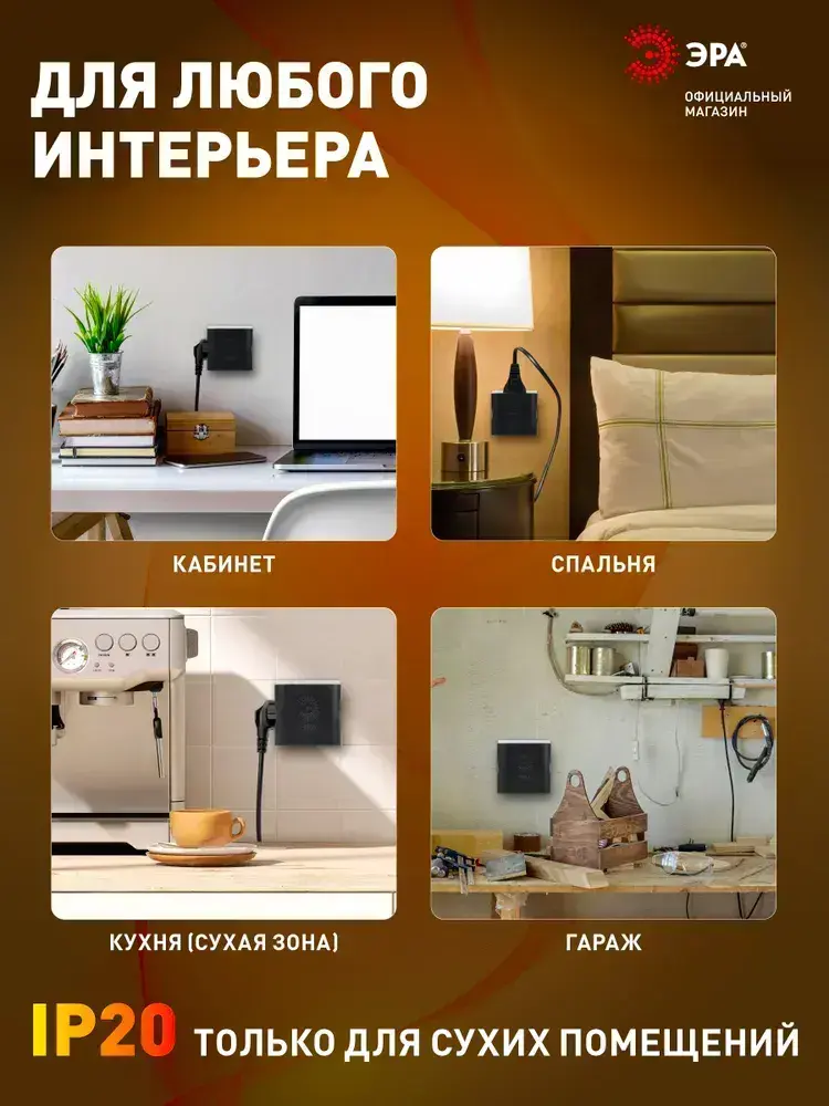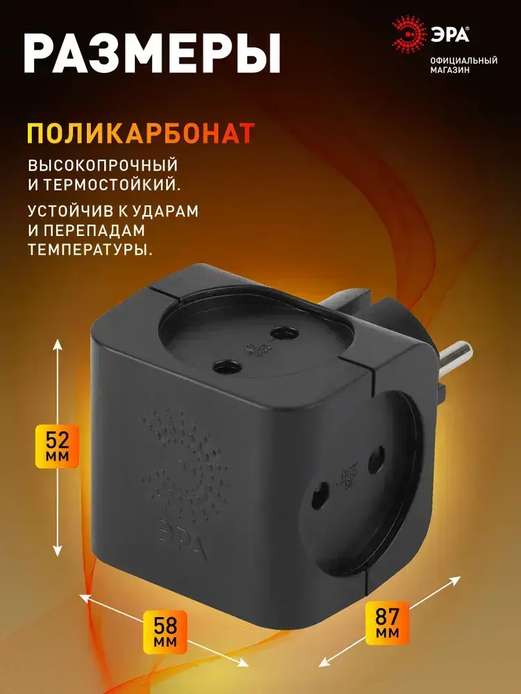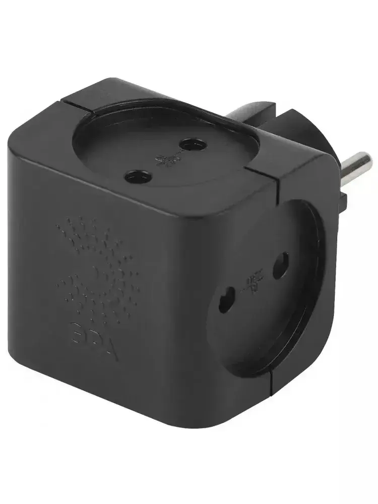 Тройник SP-4-B ЭРА розетка электрический / Разветвитель без заземления, 4 розетки, 16А, черный