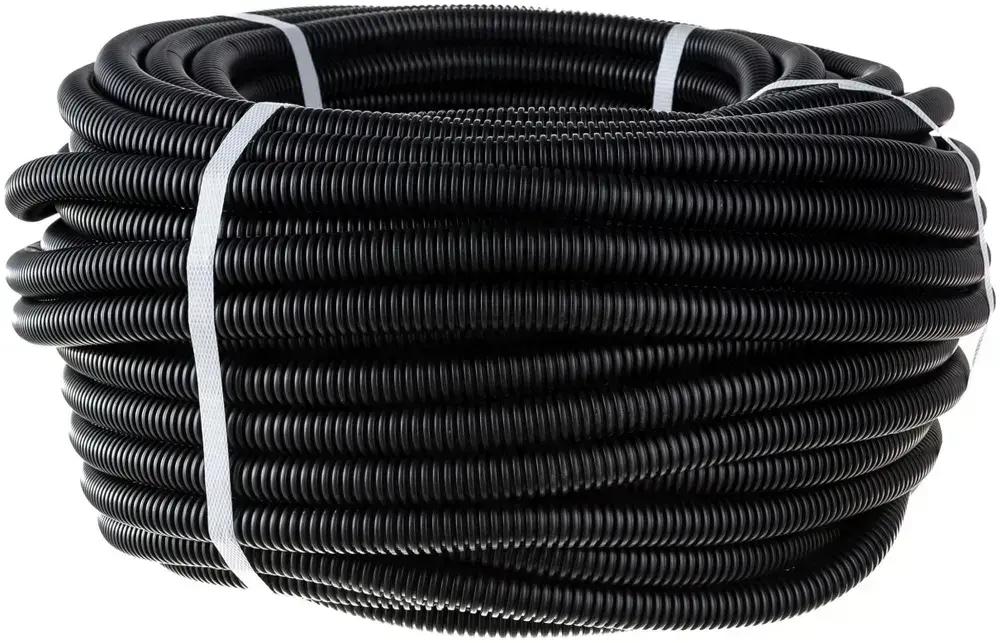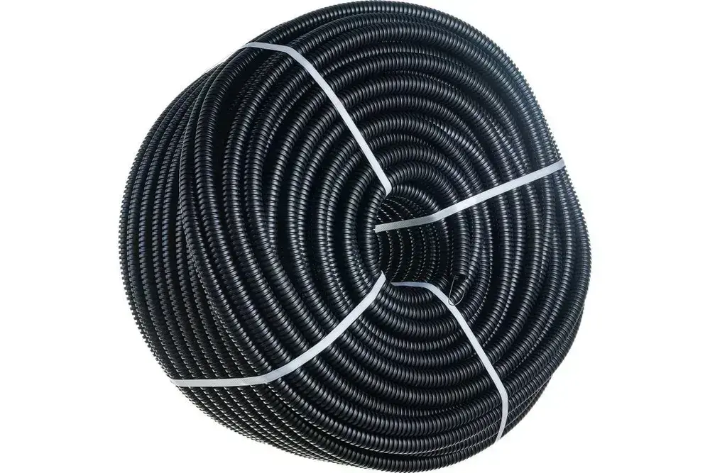 Труба гибкая гофрированная ПНД 16мм с протяжкой лёгкая (50м) чёрный
