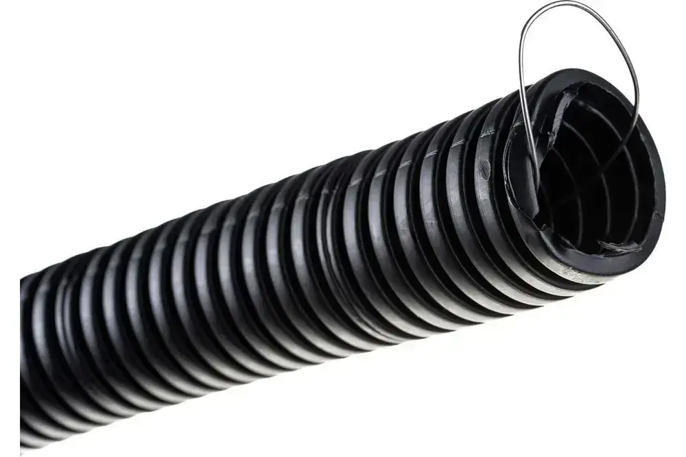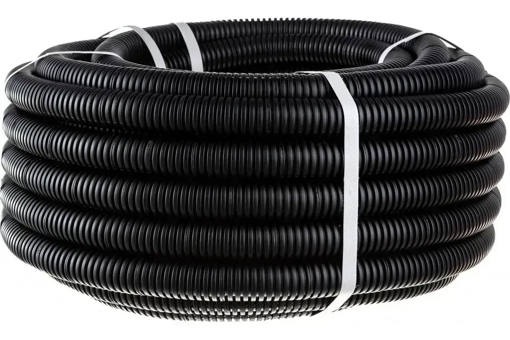 Труба гофрированная ПНД 32 мм черная гибкая легкая с зондом легкая 15 метров с протяжкой для прокладки кабеля и электропроводки