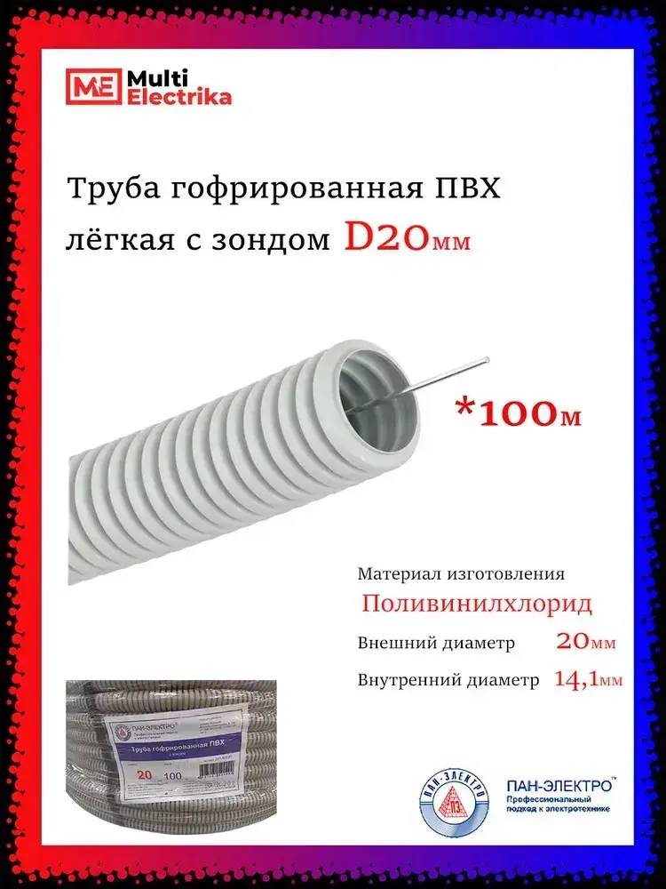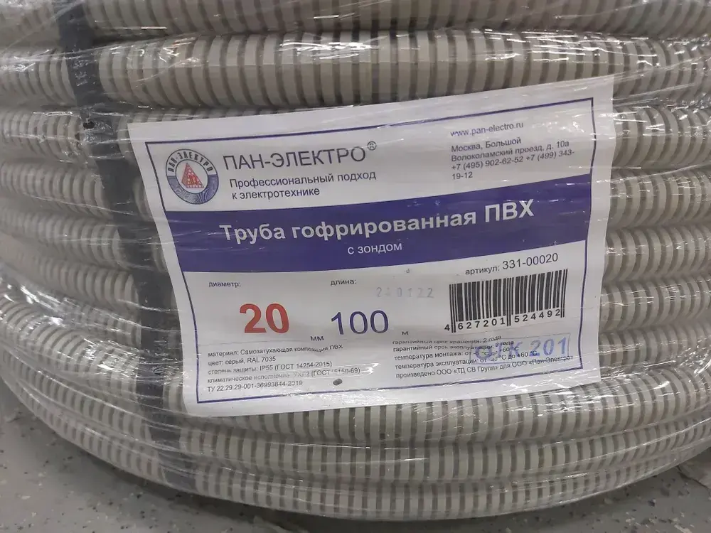 Труба гофрированная ПВХ с зондом D20 мм - 100 метров