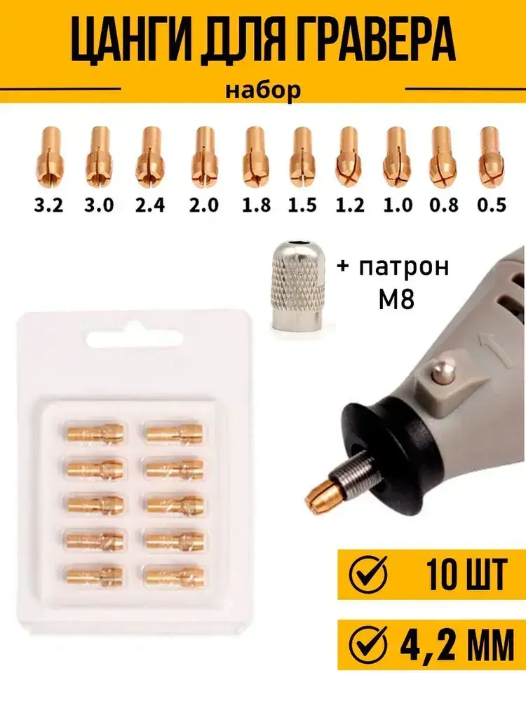 Цанги для гравера набор хвостовик 4,2 с гайкой М8