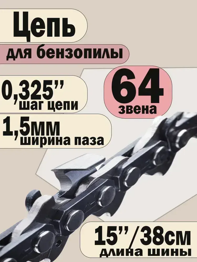 Цепь для бензопилы Хускварна, 64 звена, шаг 0,325, паз 1,5 мм
