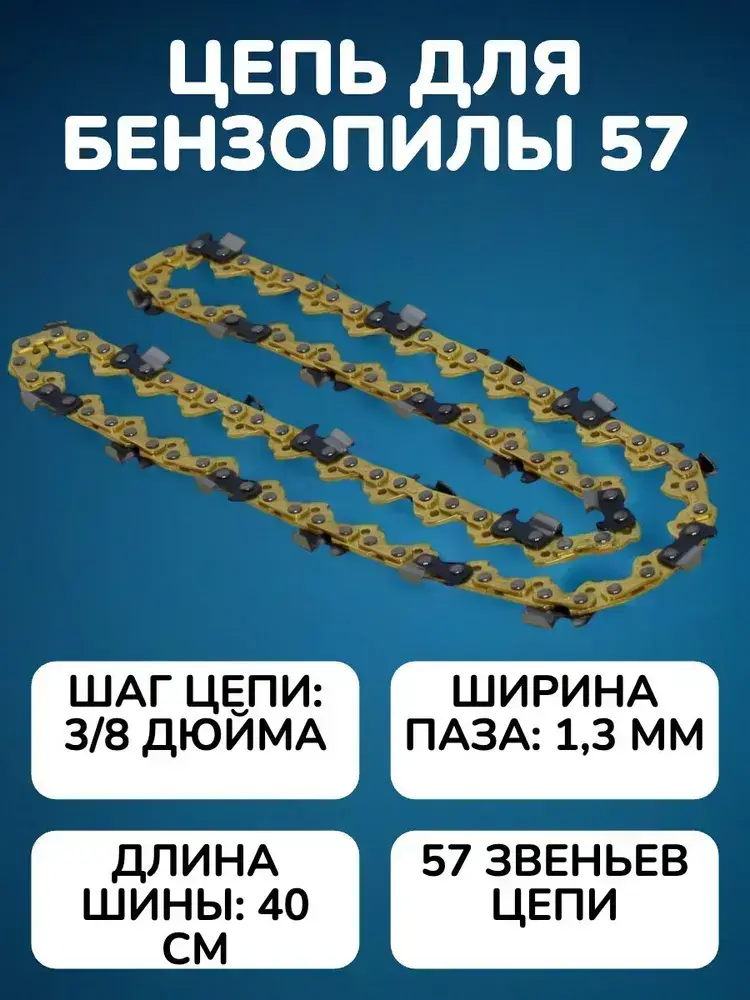 Цепь для пилы 57 звеньев 1.3 мм, шаг 3/8"