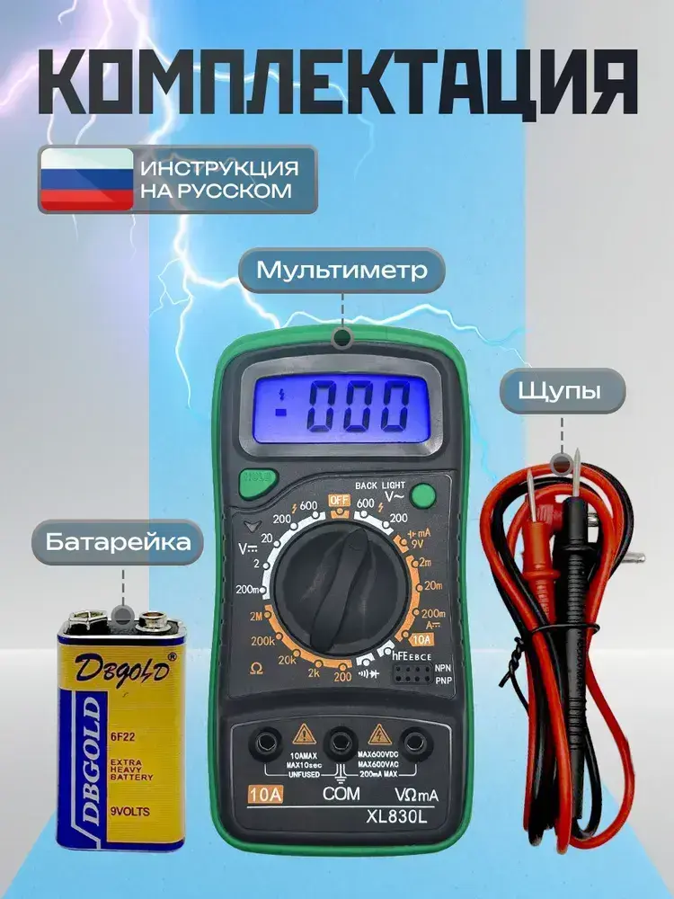 Цифровой мультиметр XL830L тестер напряжения до 600В, амперметр, прозвонка, измерение тока и сопротивления, портативный вольтметр для авто, дома и электромонтажа