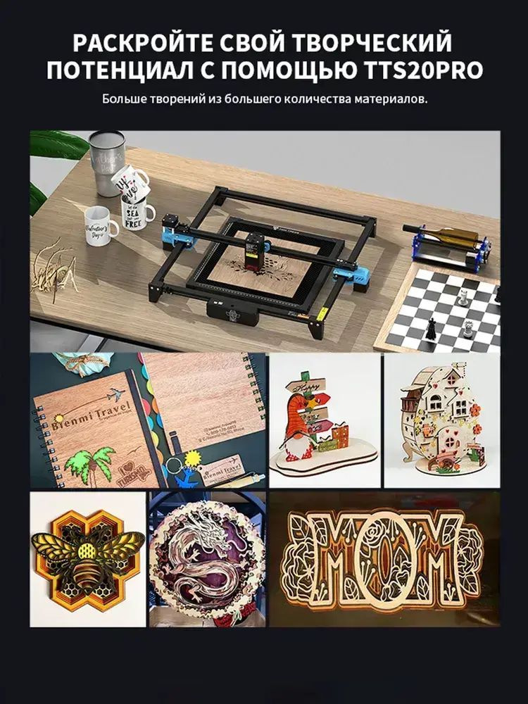 Twotrees TTS-20 PRO Лазерный гравировальный станок 130Вт с мощностью лазера 20Вт для резки Деревянная доска акриловая станок с ЧПУ с графическим, контурным и пиксельнным режимом гравировки