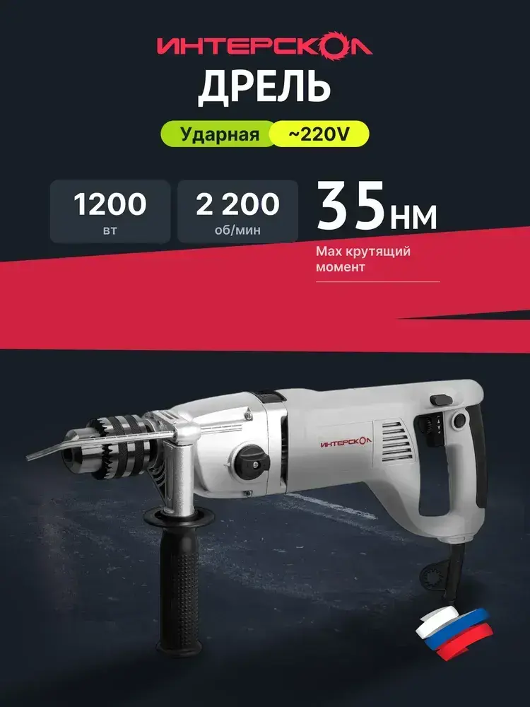 Ударная дрель ИНТЕРСКОЛ ДУ-22/1200ЭРП2, 1200 Вт, 2000 об/мин, 32000 уд/мин (330.1.0.00)
