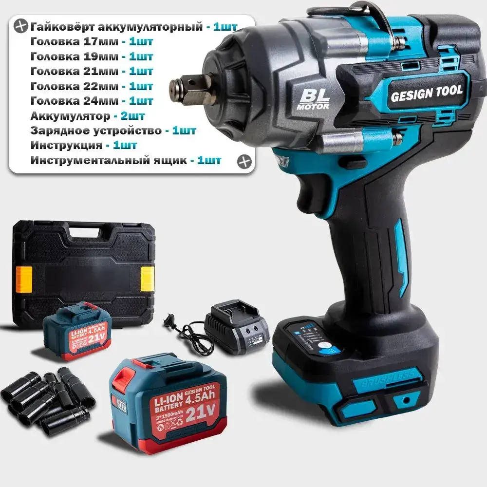 Ударный гайковерт аккумуляторный ударный GESIGN 1/2 дюйма 21 в 1800Нм
