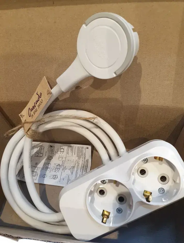 Удлинитель 2 розетки 1метр с плоской потайной вилкой невидимкой угловой