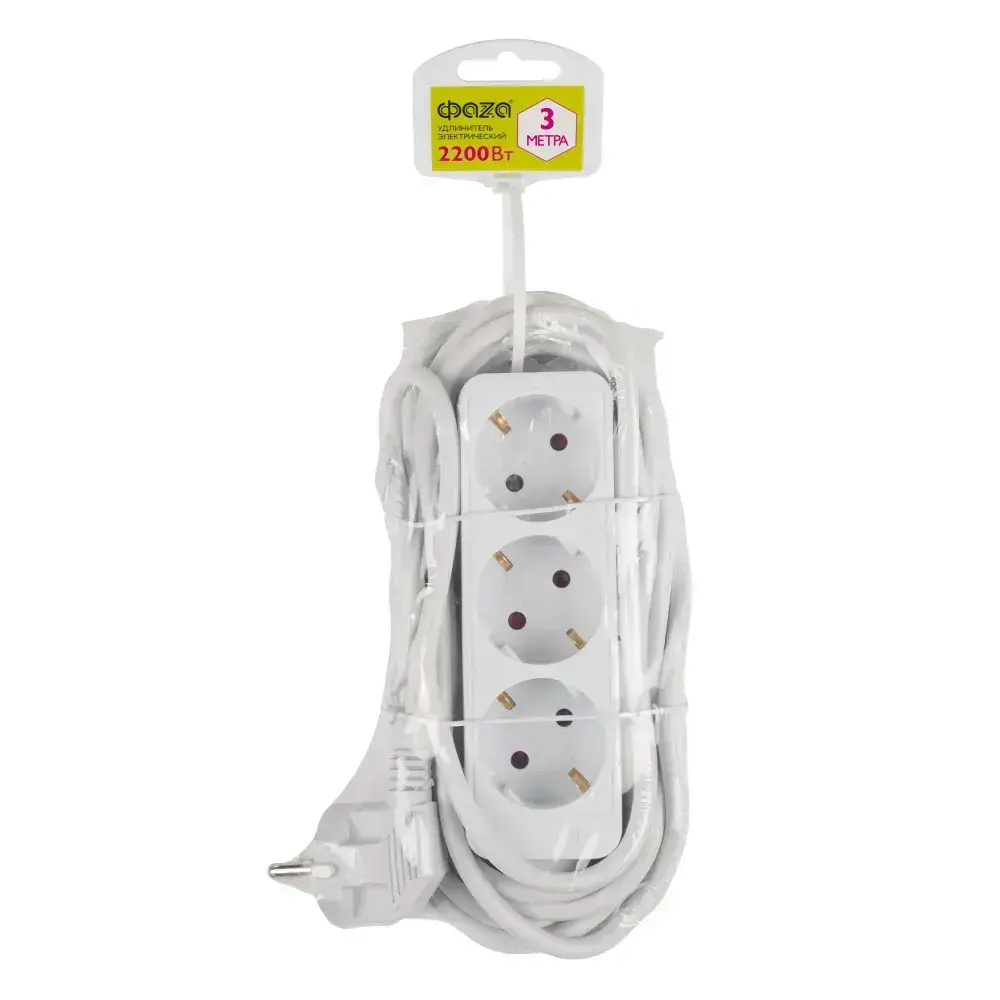 Удлинитель бытовой ФАZA с заземлением и выключением 3 гнезда 3 метра FEG-03-300
