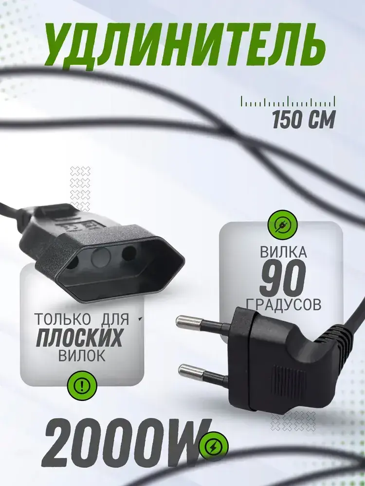 Удлинитель электрический 1,5 метра черный с вилкой 90 градусов
