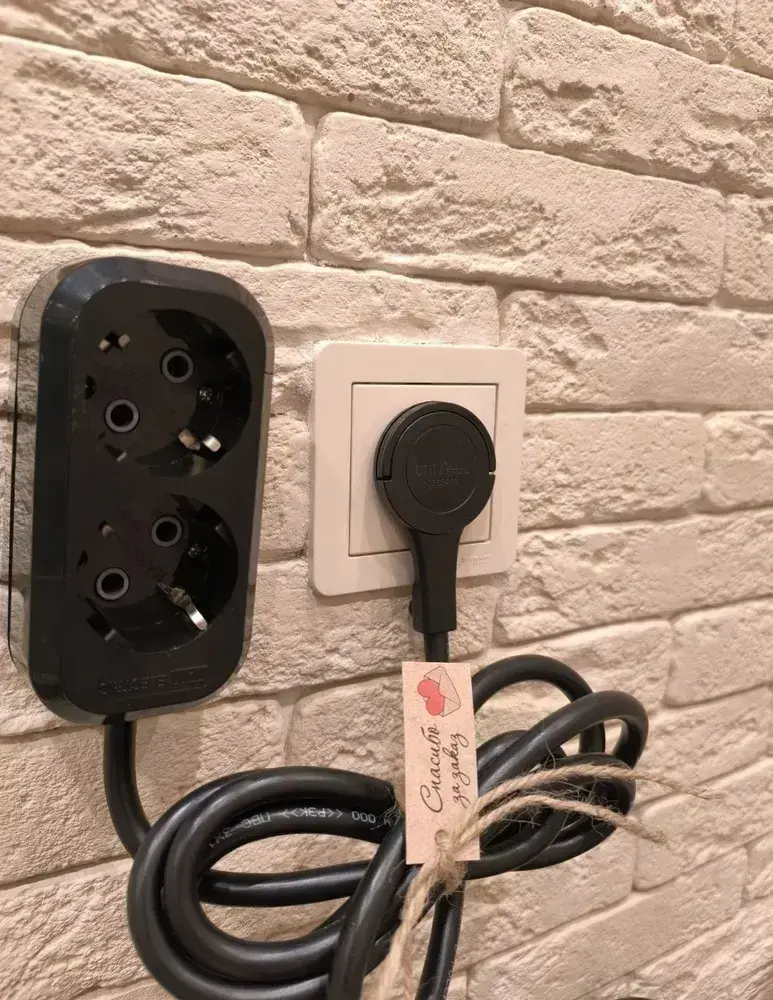 Удлинитель электрический 2 розетки 1 метр с плоской потайной вилкой невидимкой угловой
