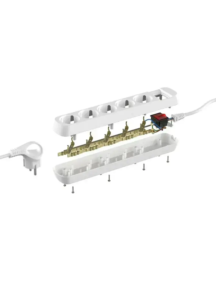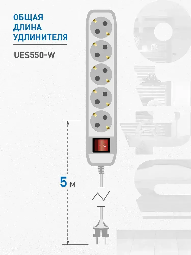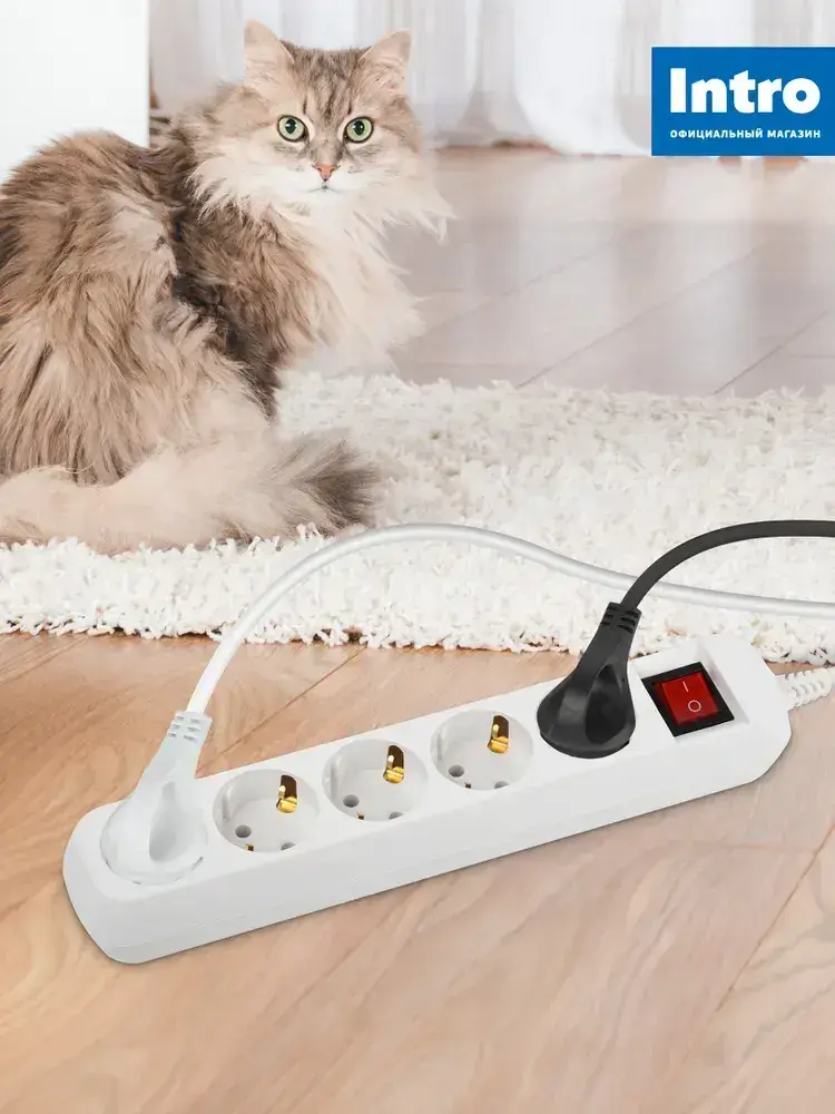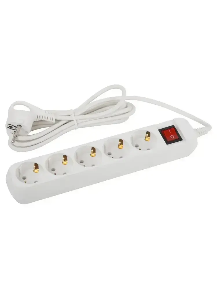 Удлинитель электрический Intro UES550-W с заземлением с выключателем 5 розеток 5 м ПВС 3х0,75мм2 10А белый
