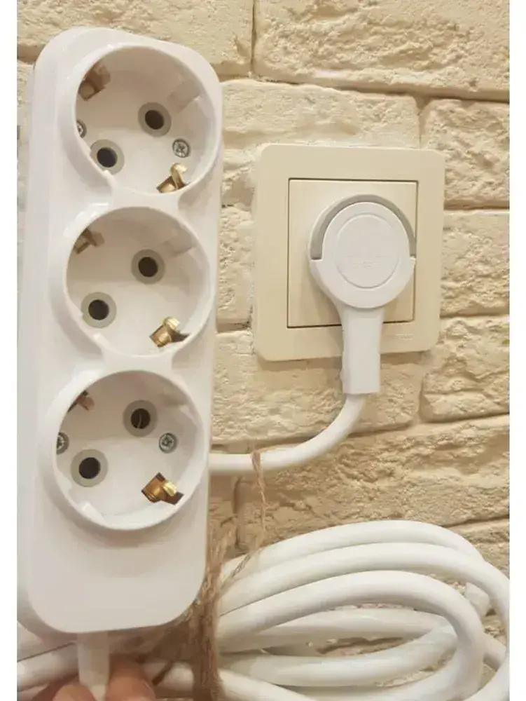 Удлинитель электрический с плоской потайной вилкой невидимкой с Кольцом 1м 3розетки