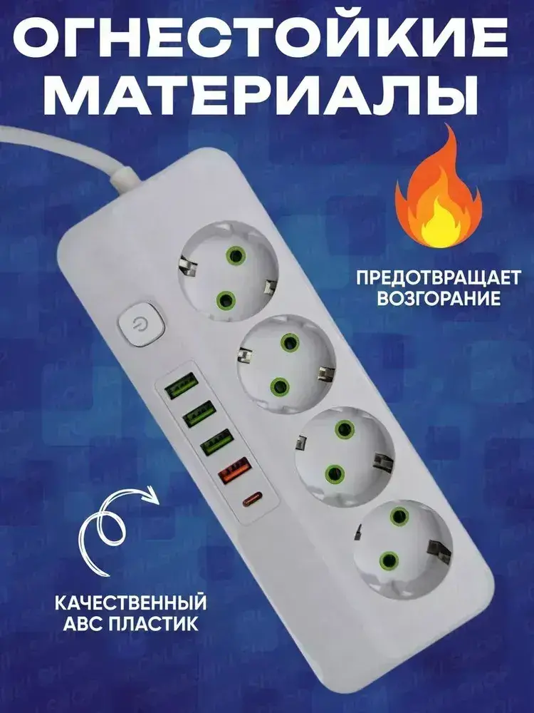Удлинитель электрический сетевой фильтр с USB и Type C