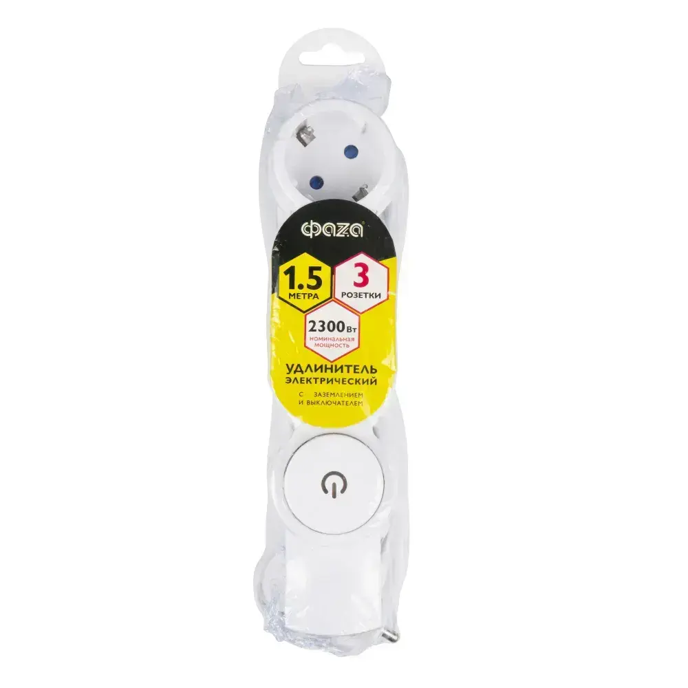 Удлинитель ФАZA с заземлением и выключением 3 гнезда 1,5 метра FW-03-150