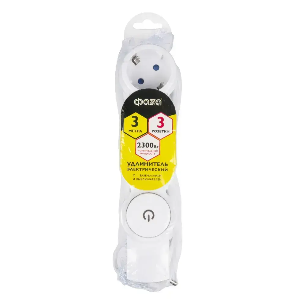 Удлинитель ФАZA с заземлением и выключением 3 гнезда 3 метра FW-03-300