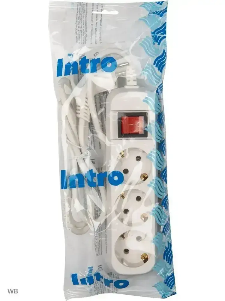 Удлинитель Intro UES315-W сетевой электрический бытовой с заземлением с выключателем 3 розетки, 1,5 м, ПВС 3х0,75мм2, 10А, белый