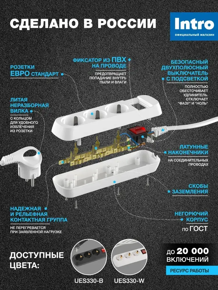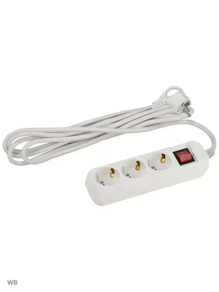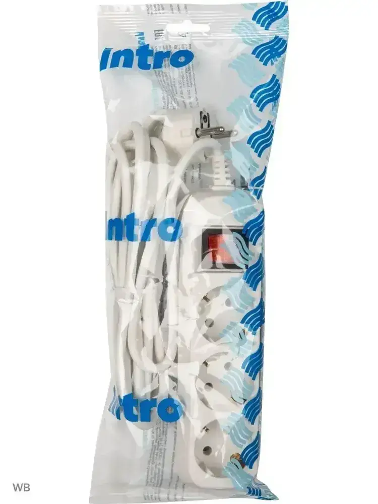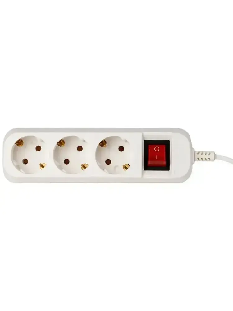 Удлинитель Intro UES330-W сетевой электрический бытовой с заземлением с выключателем 3 розетки, 3 м, ПВС 3х0,75мм2, 10А, белый