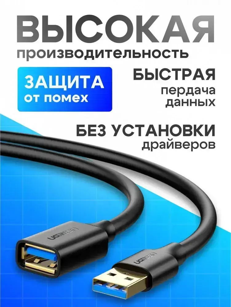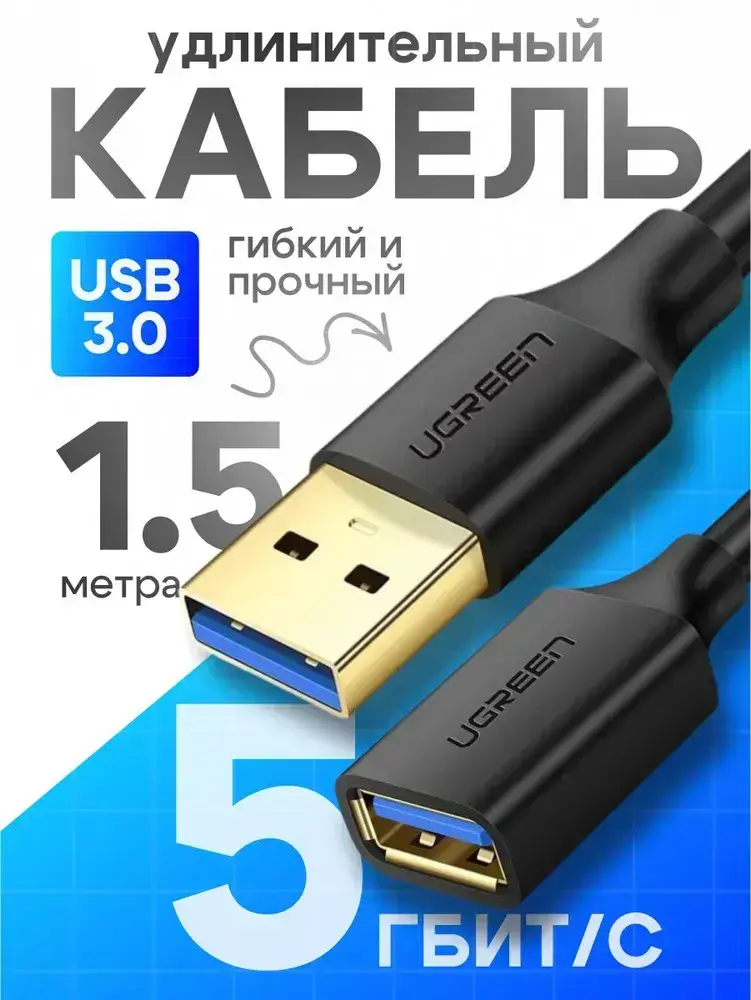 Удлинитель кабеля USB 3.0 Ugreen US129 30126 USB-A 3.0(M) to USB-A 3.0(F) 1.5 м, преимум качество, черный