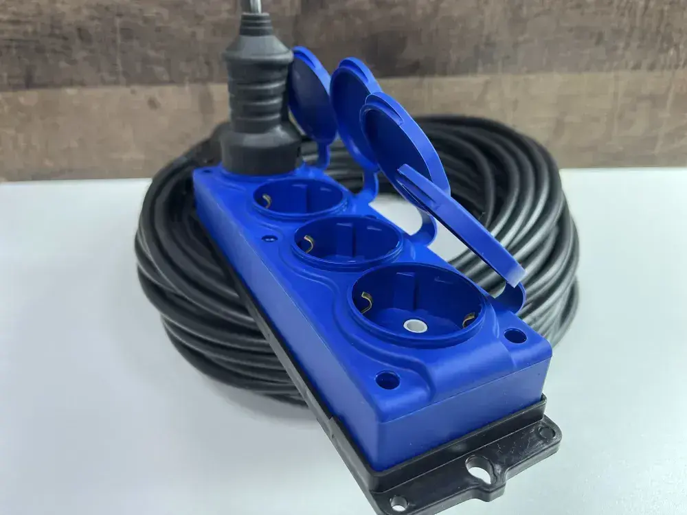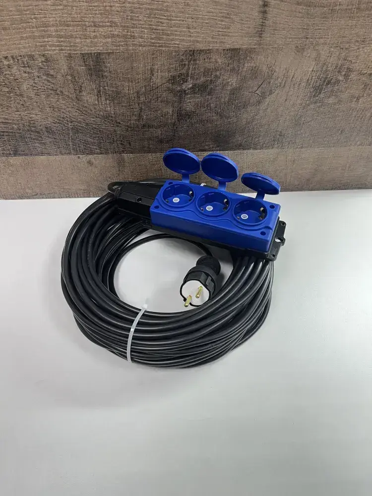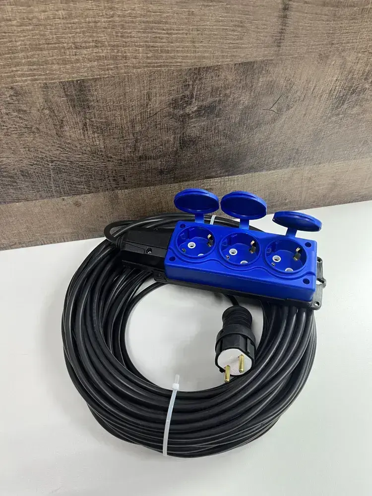 Удлинитель на буте ПВС 2х2,5 30 м/каучуковый вилка и 3х колодка цвет синий