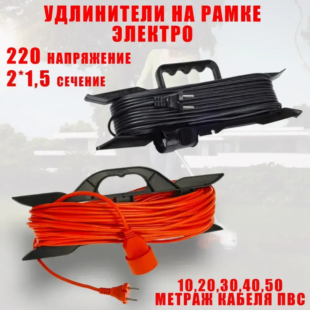 Удлинитель на рамке, длина 10 метров (кабель ПВС 2*0,75 ) черный цвет