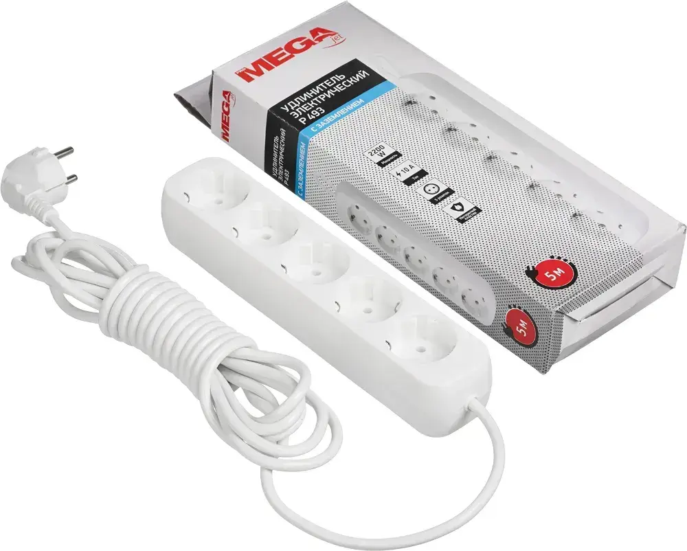 Удлинитель ProMega jet P493, сетевой фильтр, 2200 Вт / 10 А, 5 розеток, 5 метров