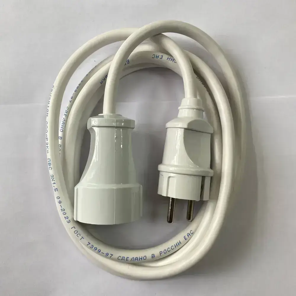 Удлинитель сетевой 2м с заземлением с одной розеткой IP20 16А ПВС ГОСТ 3х1,5 удлинитель бытовой, белый