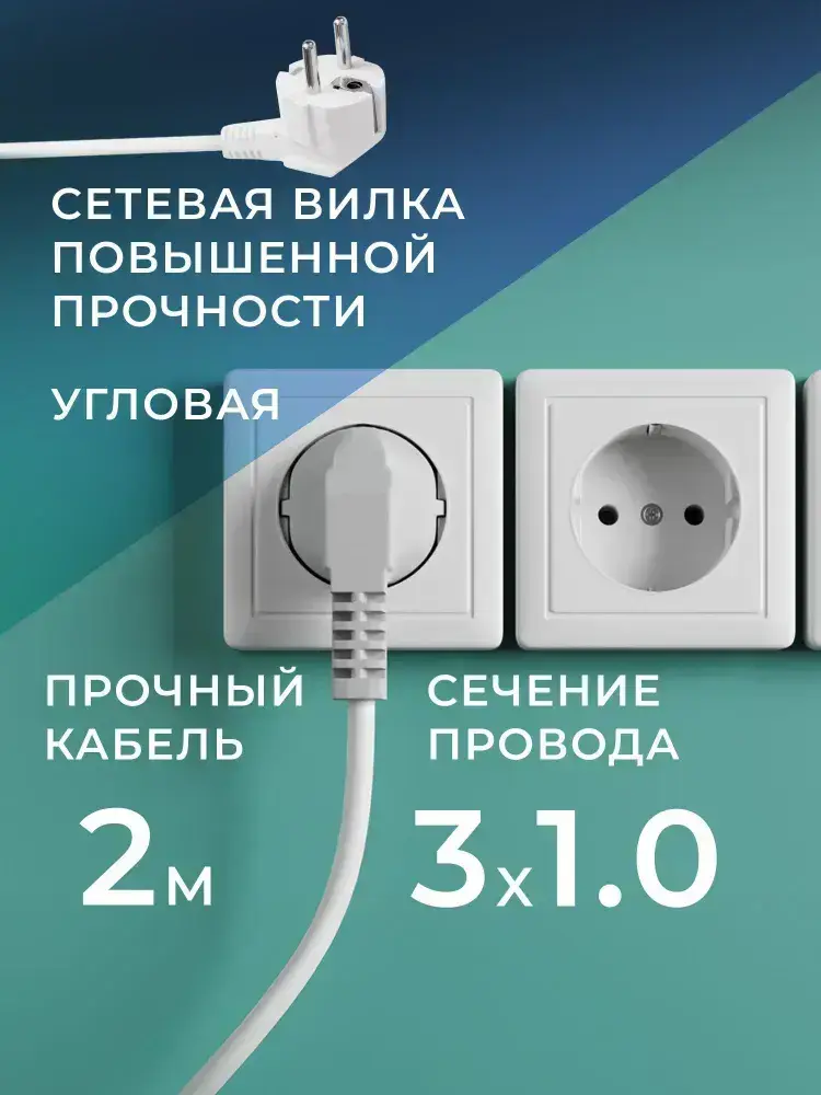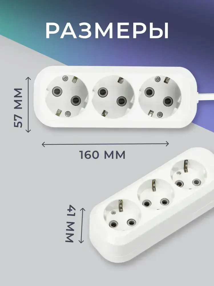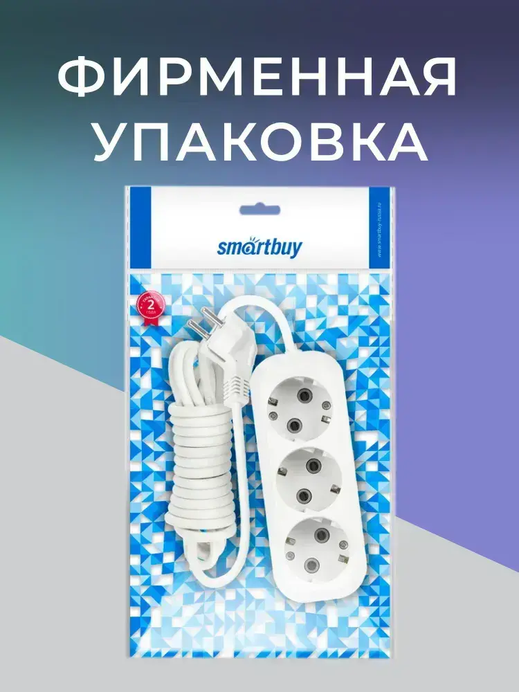 Удлинитель сетевой 3 розетки, 2 метра