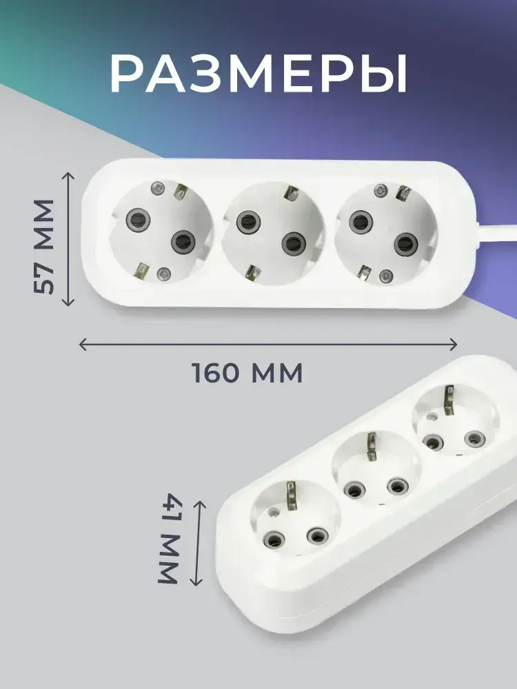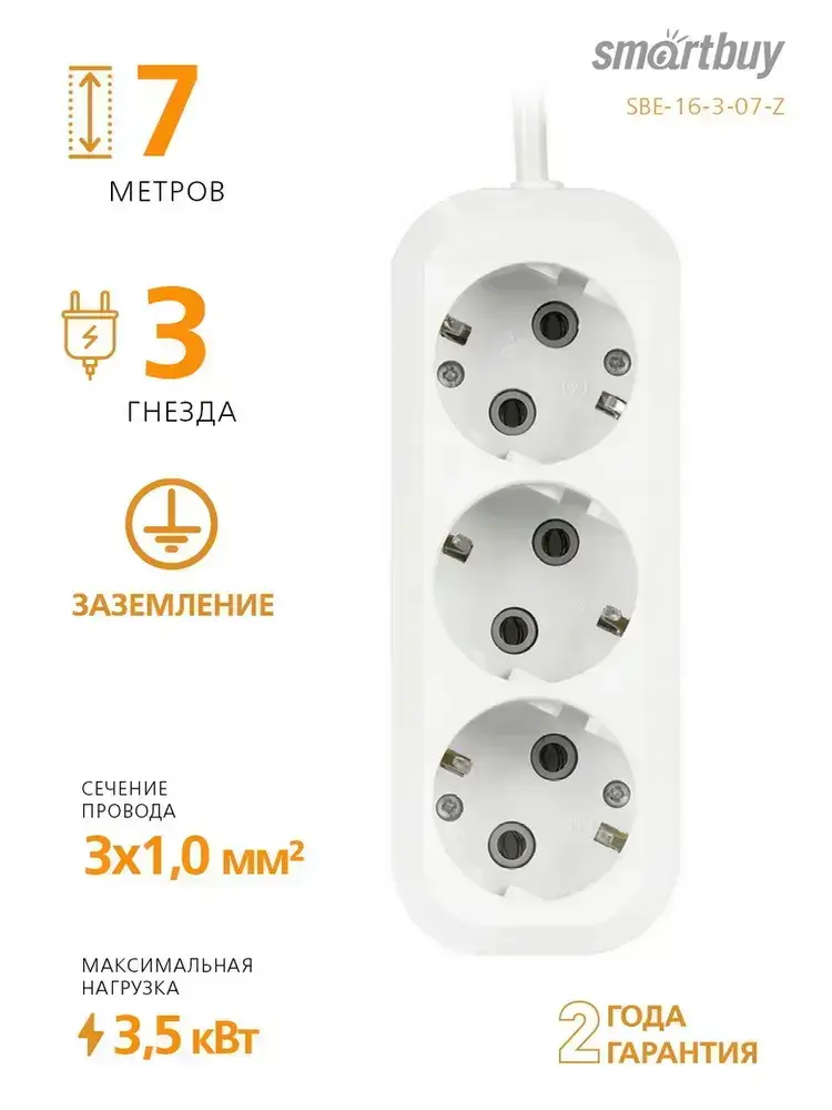 Удлинитель сетевой 3 розетки, 7 метров