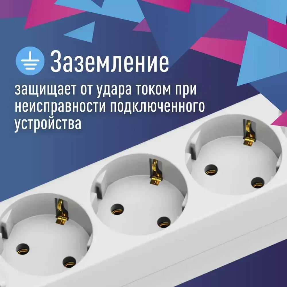 Удлинитель сетевой 5м 5 гнезд, КОСМОС 3500Вт, 220В, выключатель