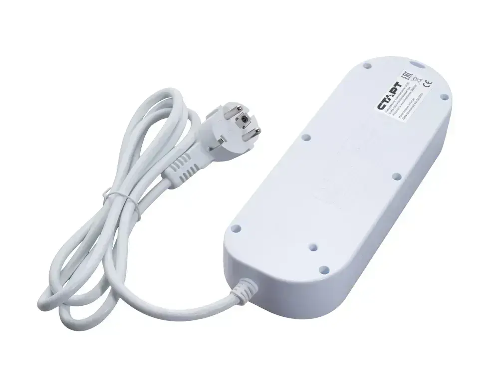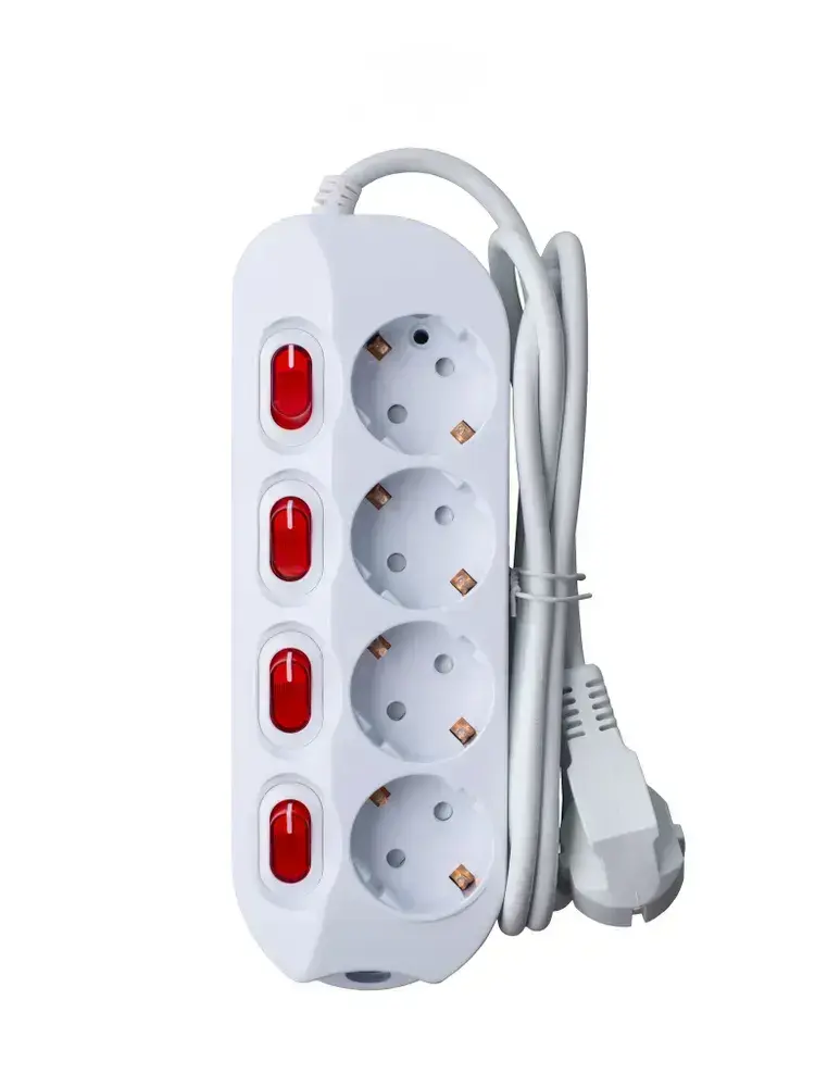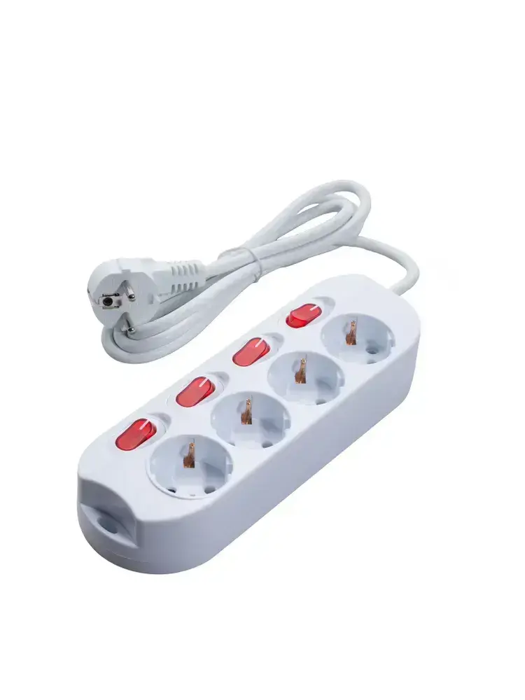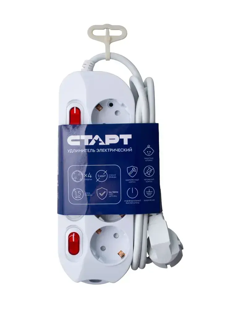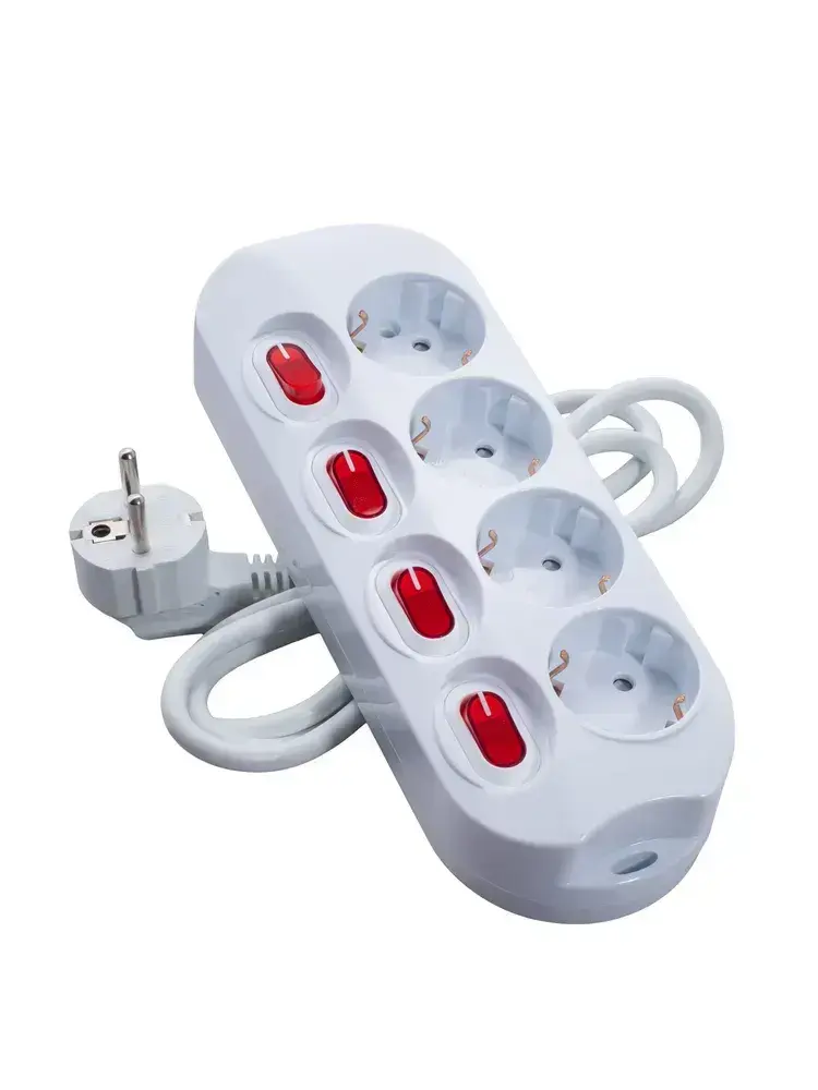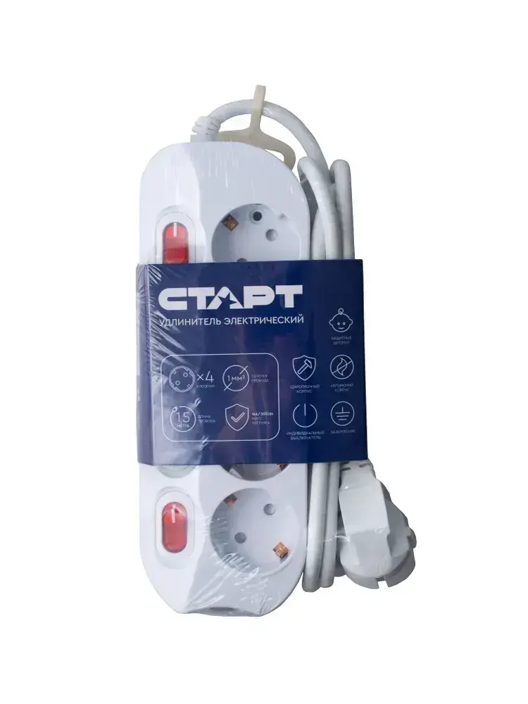 Удлинитель сетевой бытовой c заземлением 1,5м 4 розетки, 16А, 3680Вт защита от детей