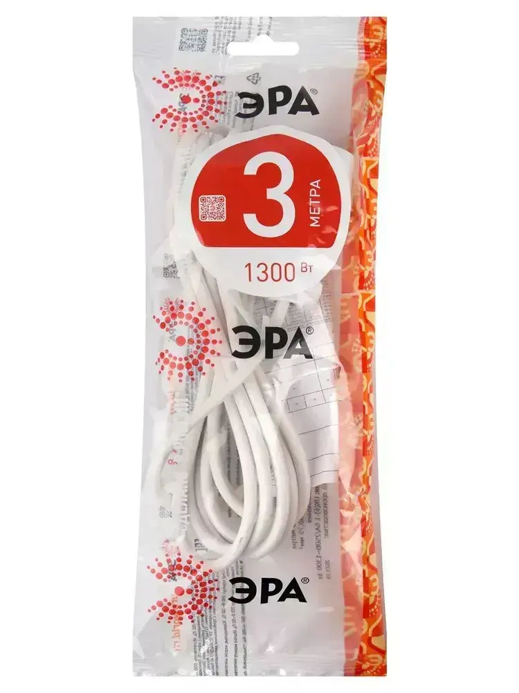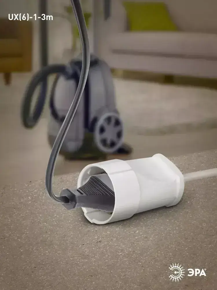 Удлинитель сетевой электрический без заземления UX(6)-1-3m ЭРА / Сетевой фильтр 1 розетка, 3м, 6А, 2x0,75мм2