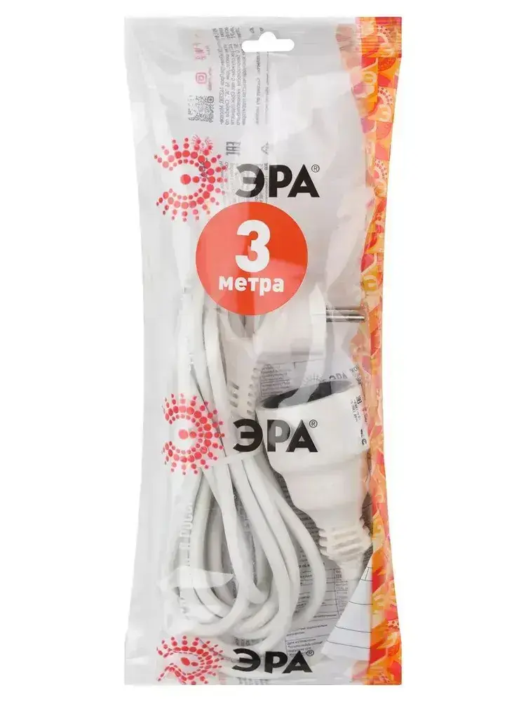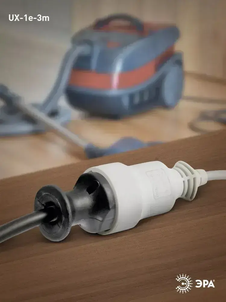 Удлинитель сетевой электрический с заземлением UX-1е-3m ЭРА / Сетевой фильтр 1 розетка, 3м, 10А, 3x0,75мм2