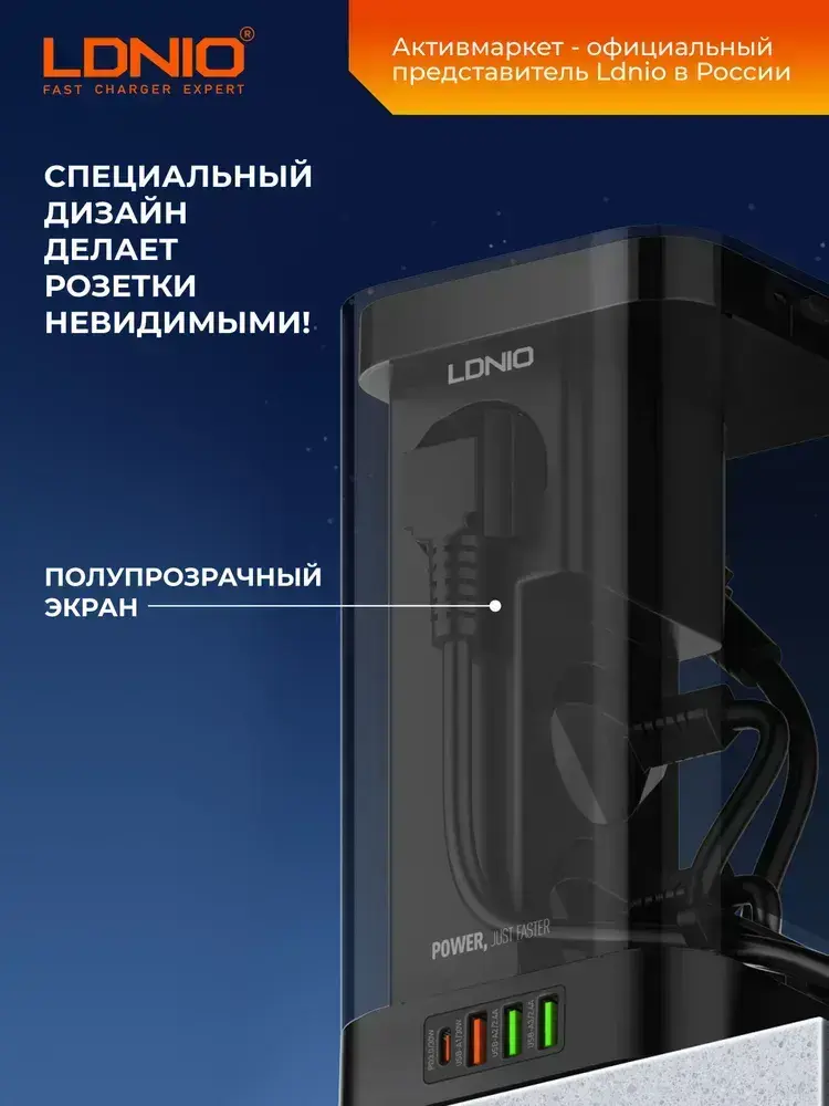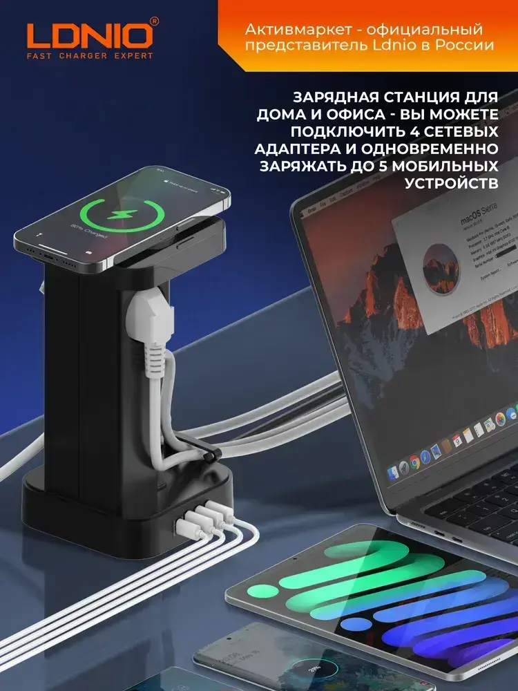 Удлинитель сетевой фильтр Ldnio SEW4485 2 метра с 4 USB и беспроводной зарядкой, тройник разветвитель с заземлением и выключателем