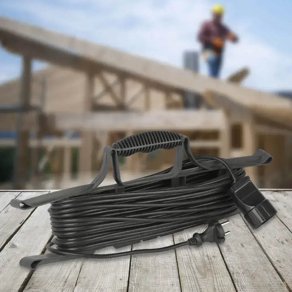 Удлинитель силовой 20м на рамке Intro UF1200 без заземления 1 розетка ПВС 2x0.75мм, строительный садовый для газонокосилки и триммера