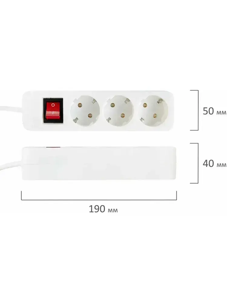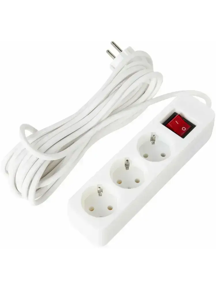 Удлинитель Sonnen Psw-503, 3 розетки c заземлением, выключатель 10 А, 5 м, белый