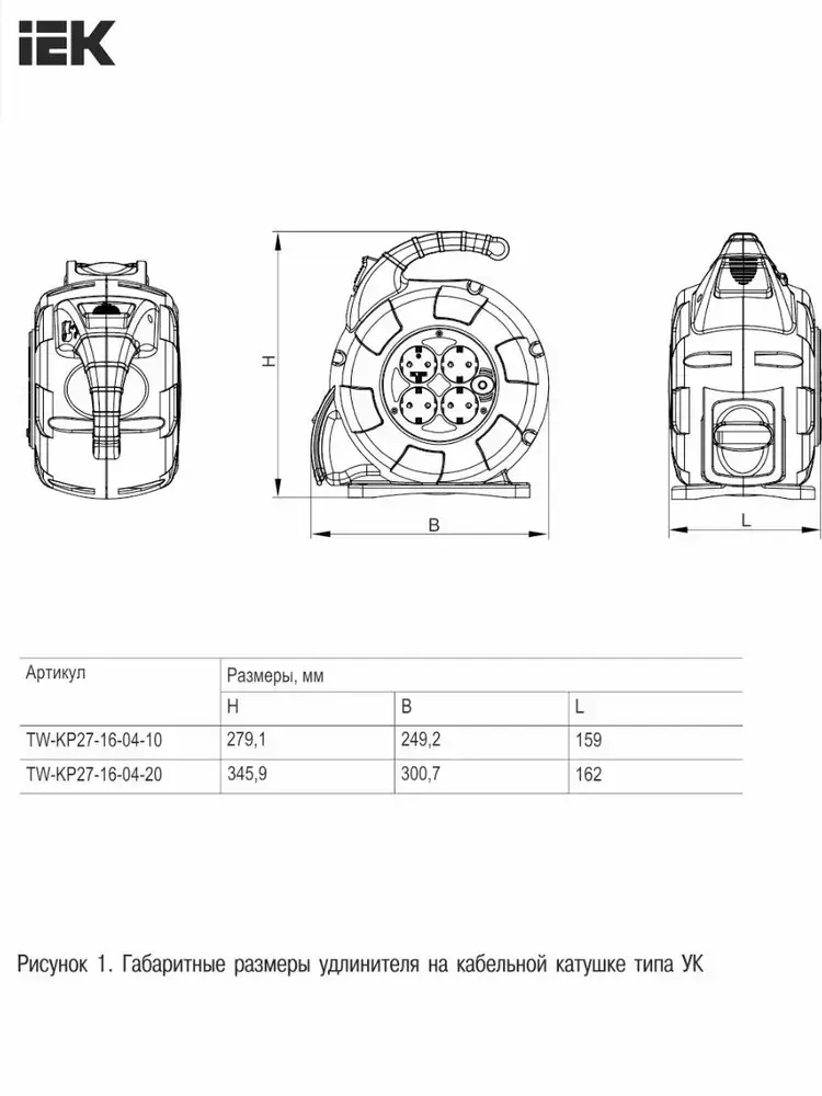 Удлинитель TWIST Катушка 4 места УК20 4 розетки 2P+PE/20м ПВС 3х1,5мм2 автосмотка IEK