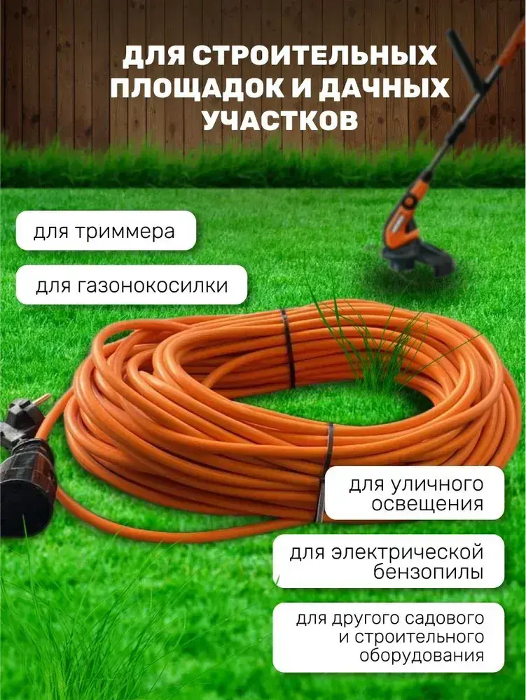 Удлинитель в бухте 40 метров 2*2.5 для газонокосилки, сварки, триммера в бухте. Бытовой садовый на 1 розетку 40 м оранжевый. Строительный удлинитель-шнур ПВС 40м