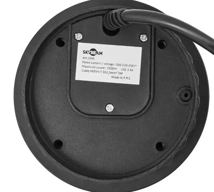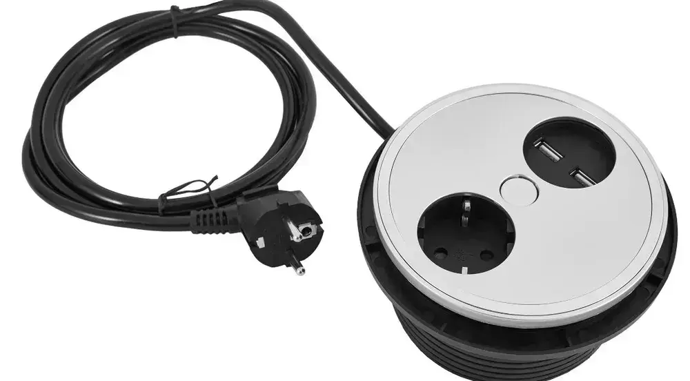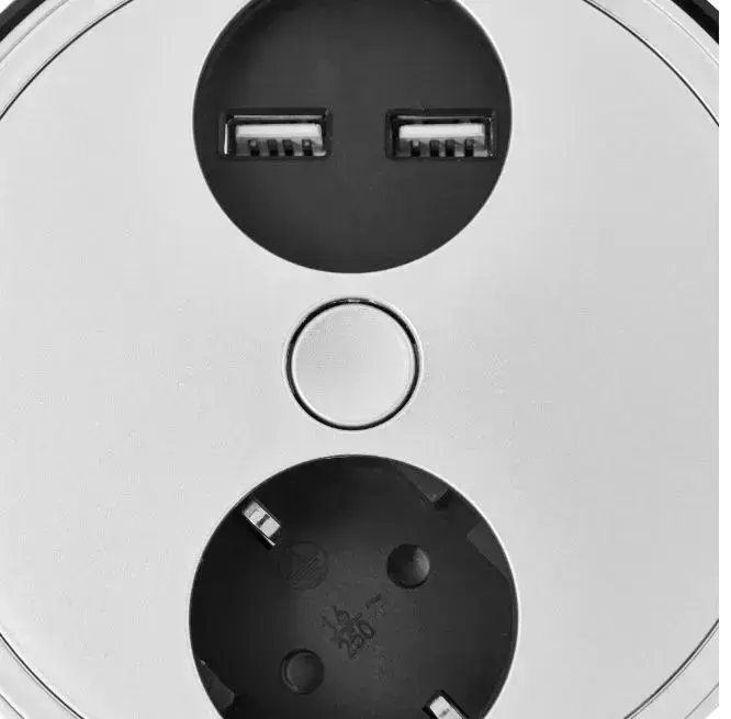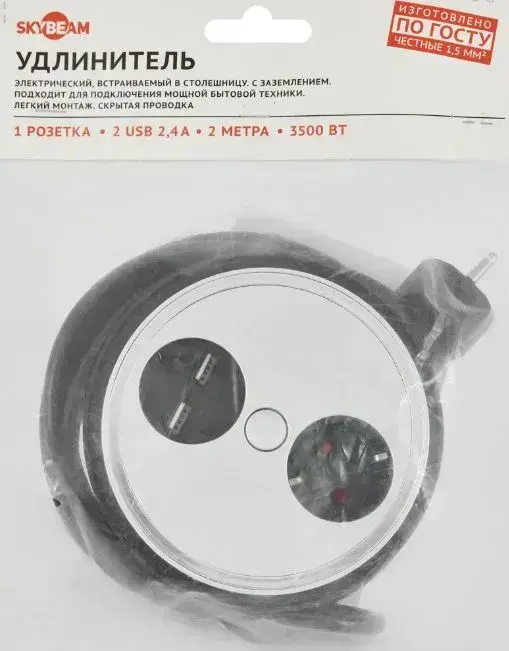 Удлинитель встраиваемый настольный Skybeam, 1 розетка 16A, 2 usb 2,4A, 220-250В, 3x1.5 мм, 2м, серый (1034)