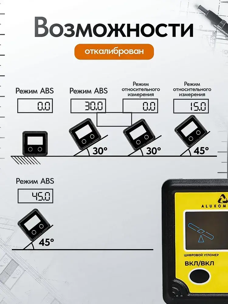 Угломер электронный магнитный, измеритель углов с магнитным основанием для заточки ножей