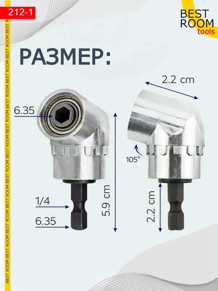 Угловая насадка на дрель, Адаптер угловой для шуруповерта, для бит 1/4