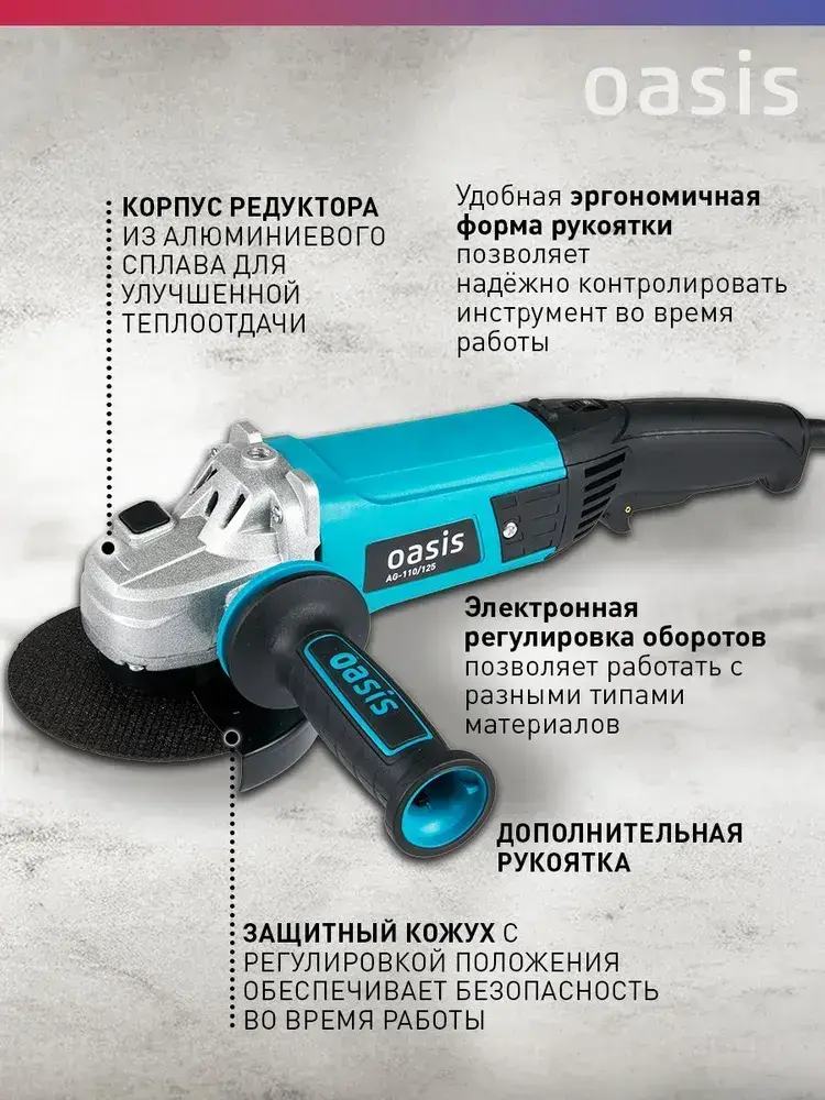Угловая шлифовальная машина с регулировкой оборотов УШМ Oasis AG-110/125, 1100 Вт, 125 мм / болгарка электрическая 125