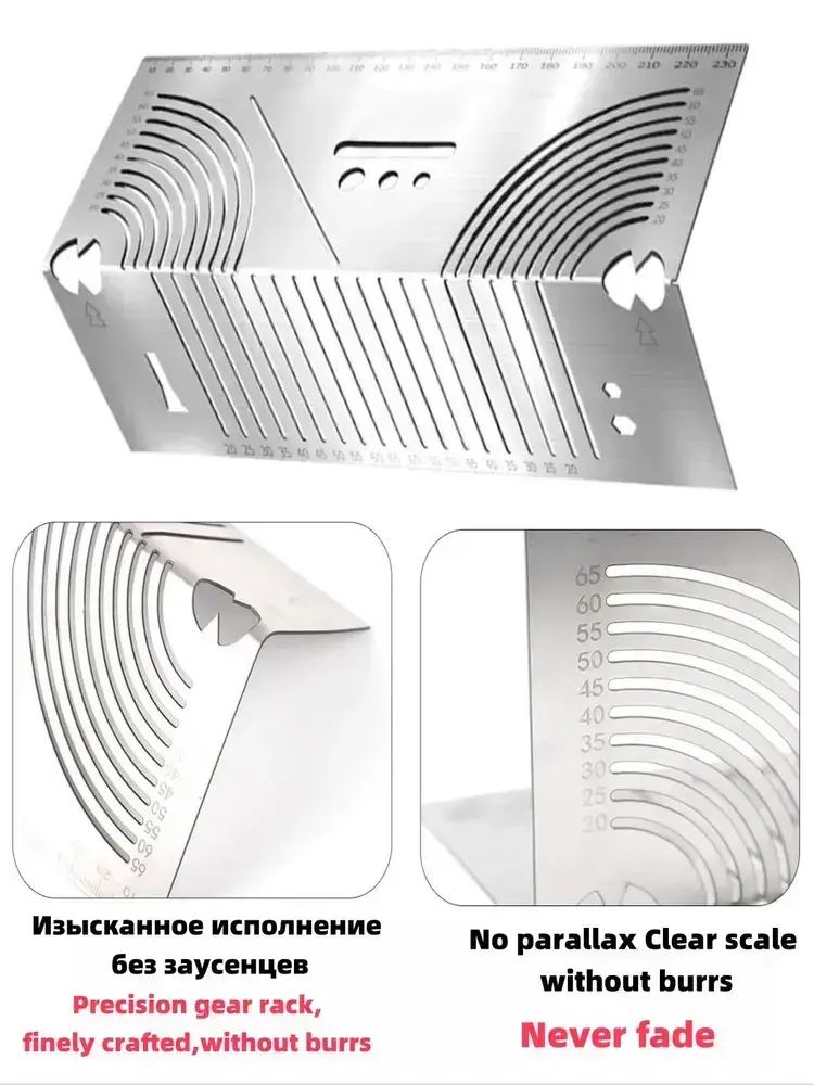 Угловая строительная линейка 3D / Угольник столярный разметочный / Линейка - угольник/20mm-65mm