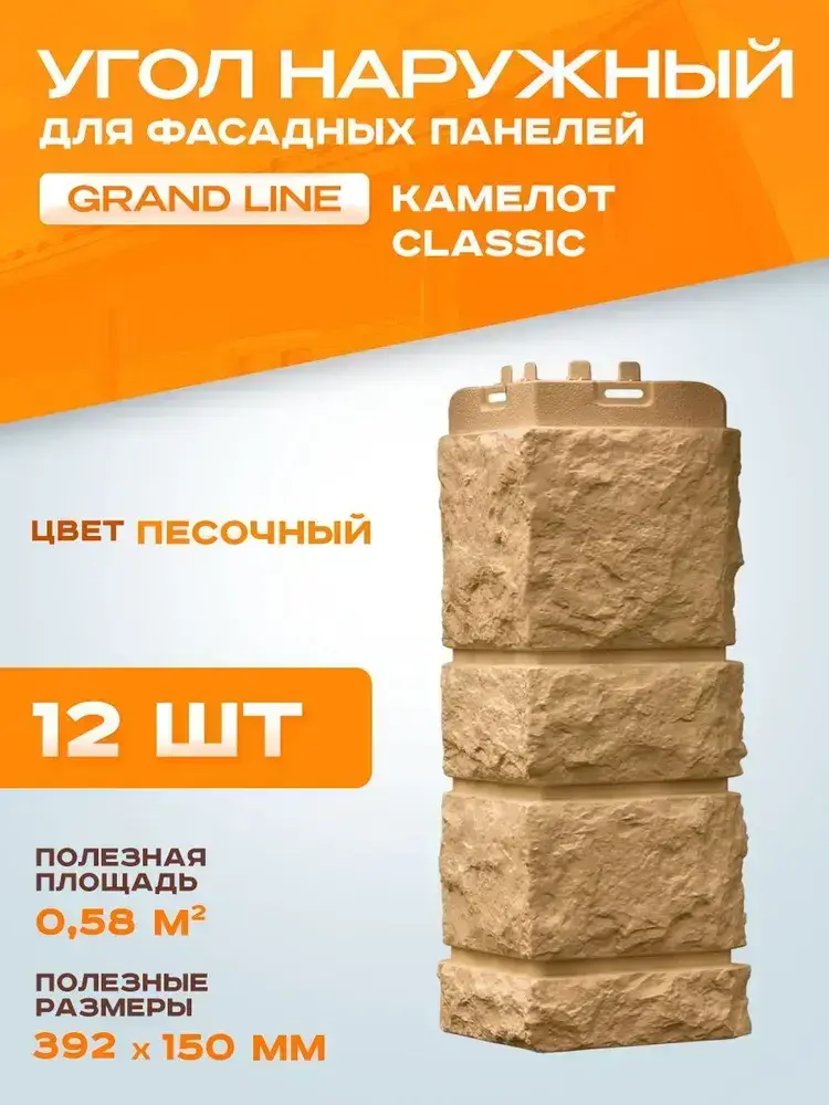 Угол наружный Grand Line Камелот Classic Песочный 0.392*0.150мм 0.58м2 1уп-12шт