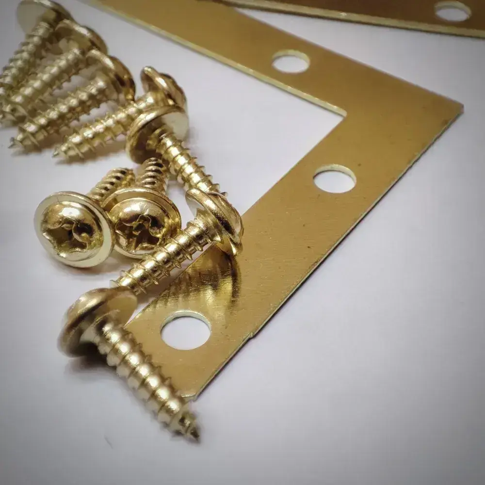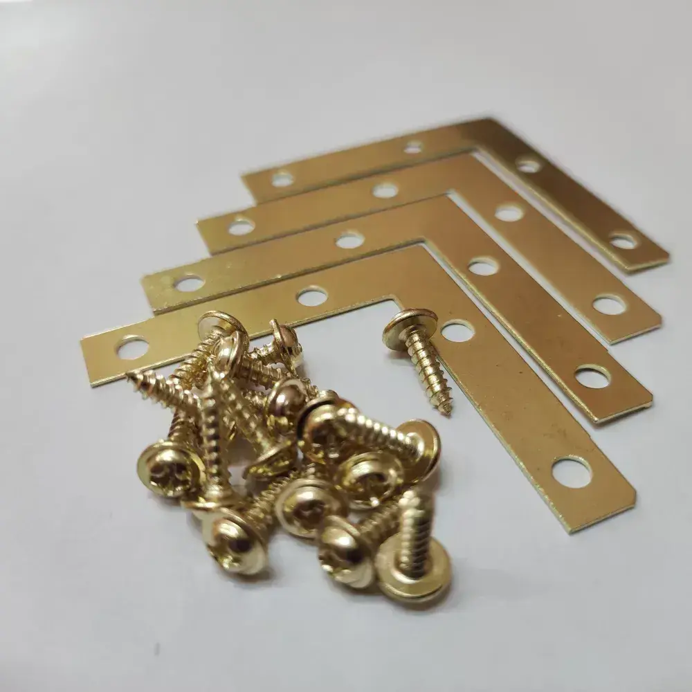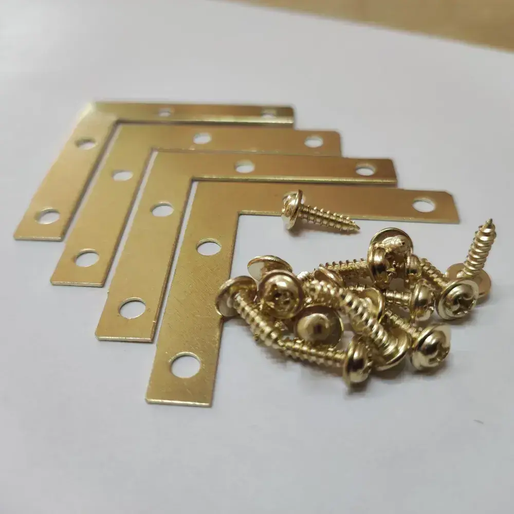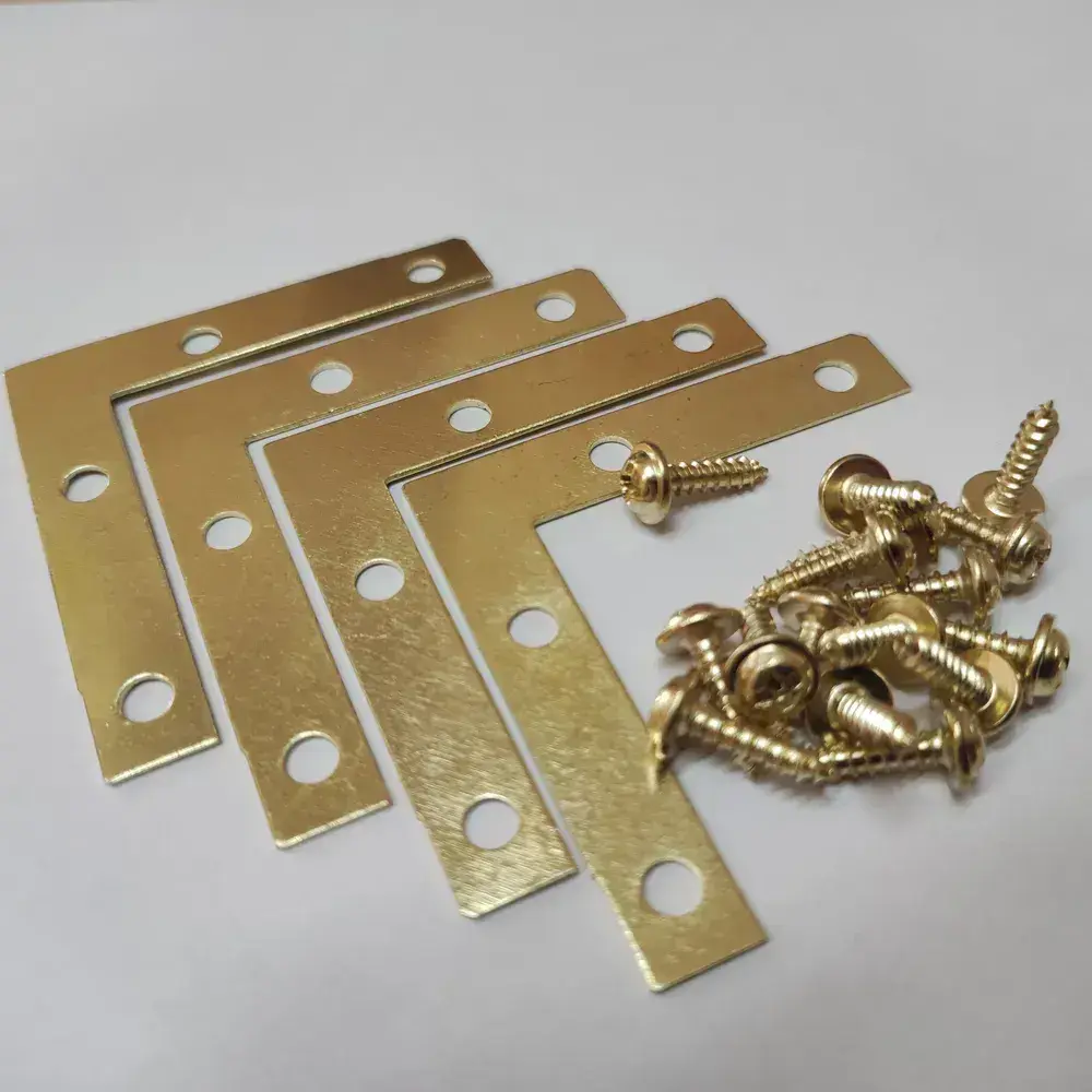 Уголок крепежный 50х50 мм плоский (мебельный, соединительный, рамный) металлический 4 штуки (саморезы в комплекте) цвет - золото