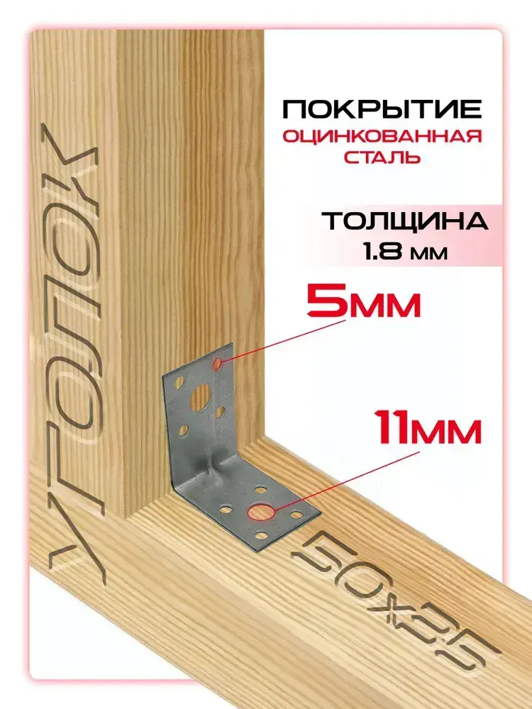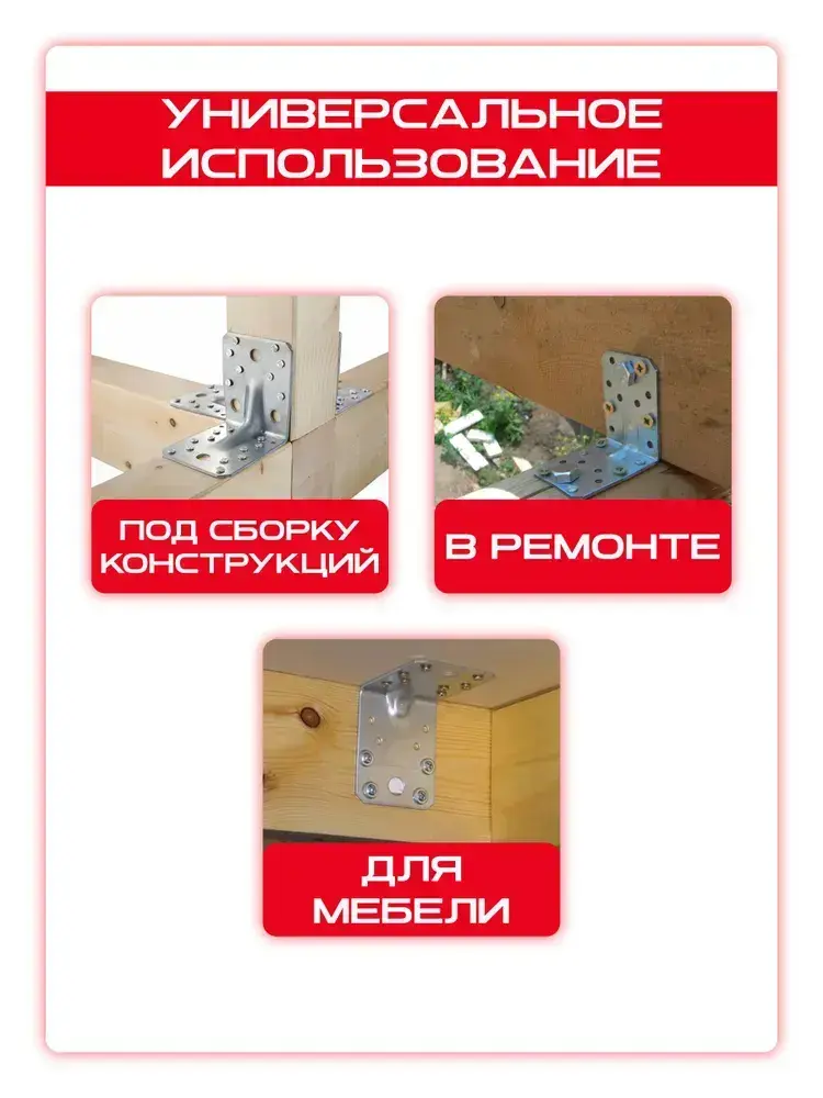 Уголок крепежный усиленный 50 х 50 х 35 мм, (25 шт)