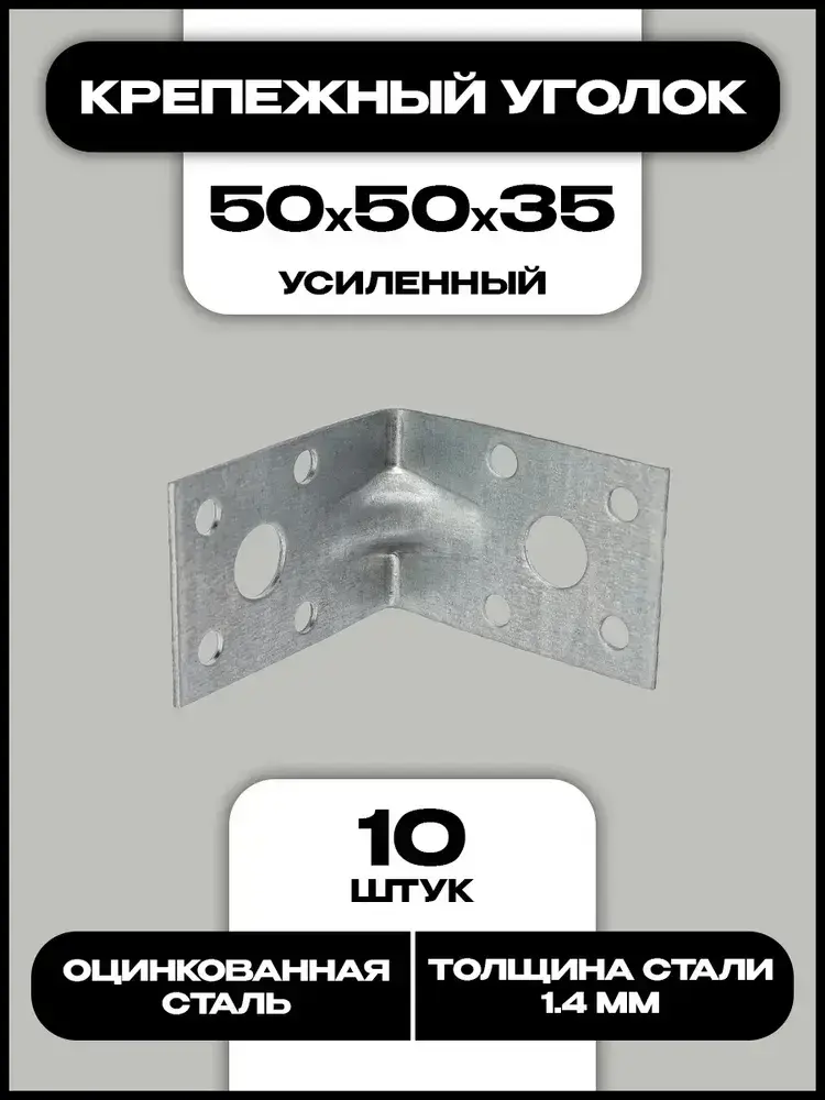 Уголок крепежный усиленный 50x50x35 мм, 10 шт.