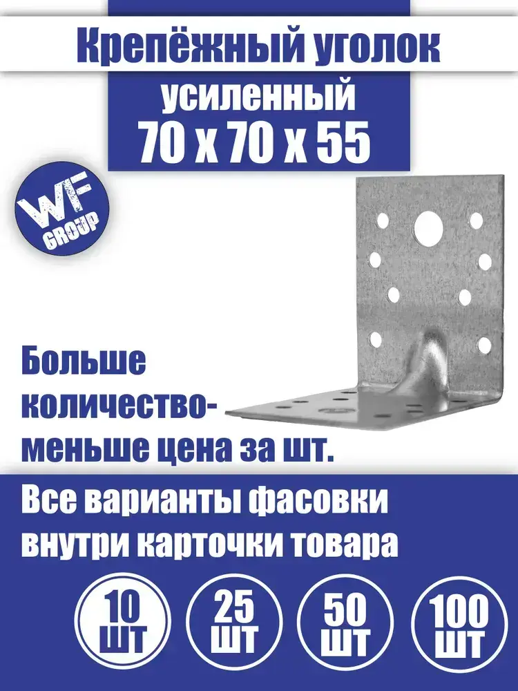 Уголок крепежный усиленный 70 x 70 x 55 мм, 10 шт.