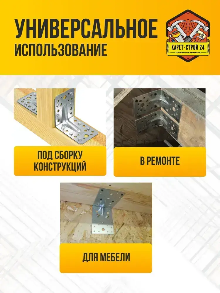 Уголок крепежный усиленный 70х70х55 (50 шт) / перфорированный / металлический