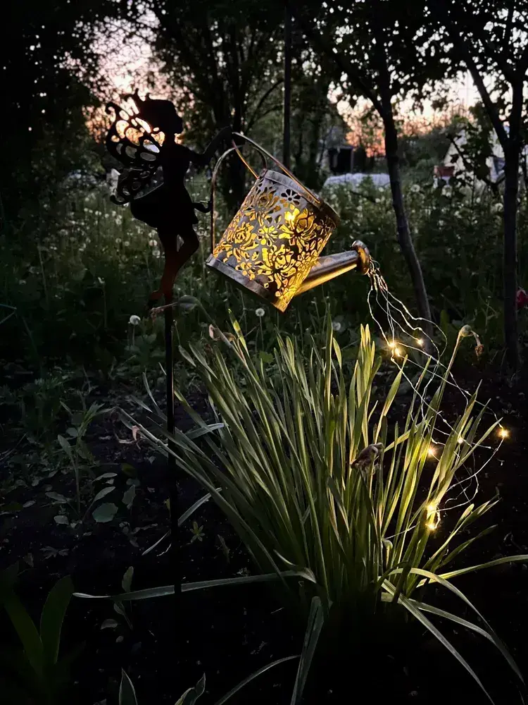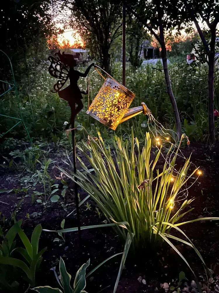 Уличные садовый светильник на солнечной батарее девочка "Лейка"